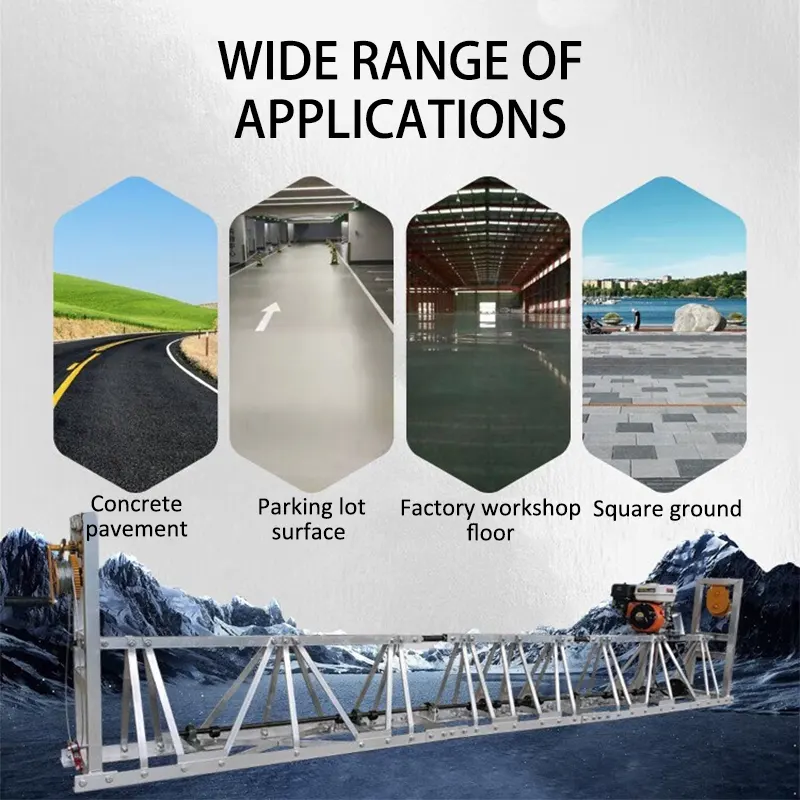 4M betongulv aluminium vibrerende truss -screed -maskine bruges for det meste til at bane vibrerende påvirkning betonoverflade, lufthavnsbetonoverflade, stor pakningsopslæmning, pladser, jernbaner og andre store fabriksbetonoverflade. Dette er designet med nøjagtigt brolægningssystem, egnet og perfekt til store betonoverflader, den maksimale arbejdsbredde kan være op til 16m eller 18 m.